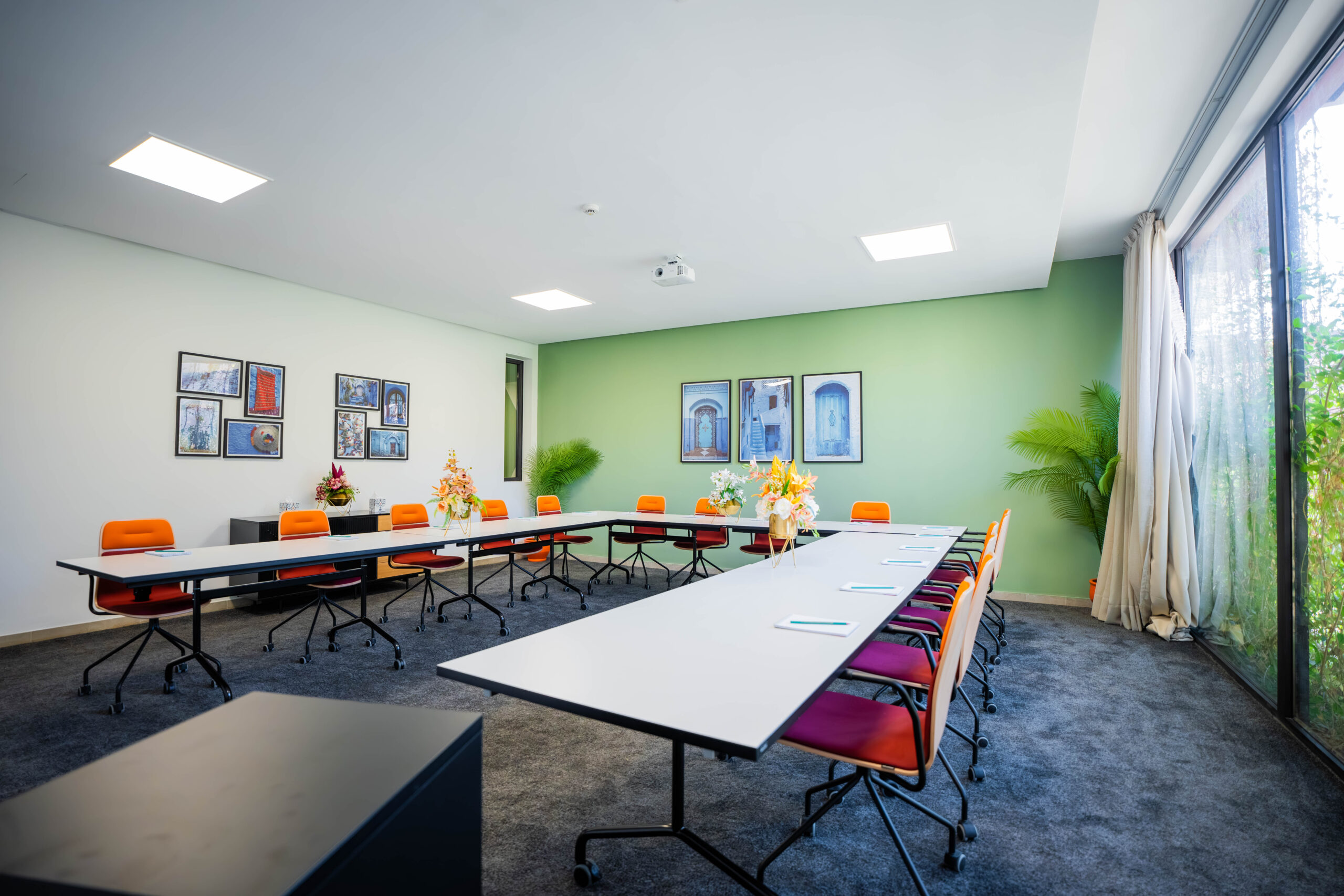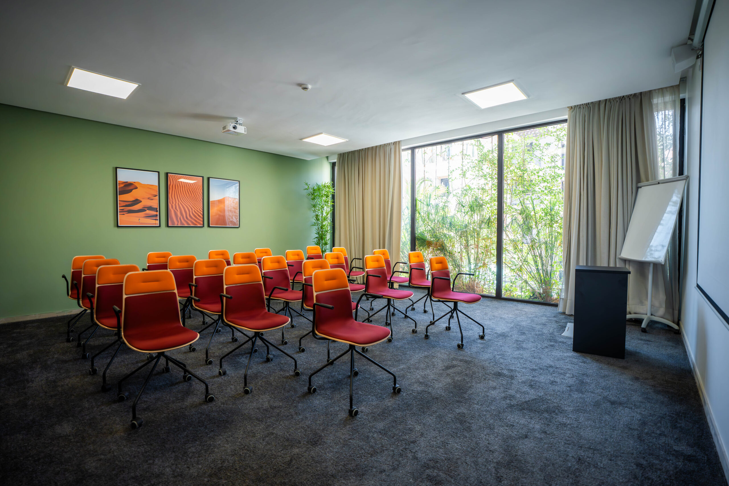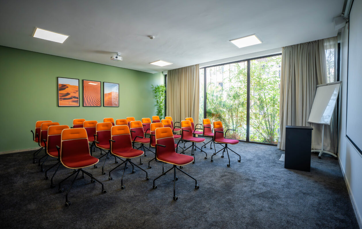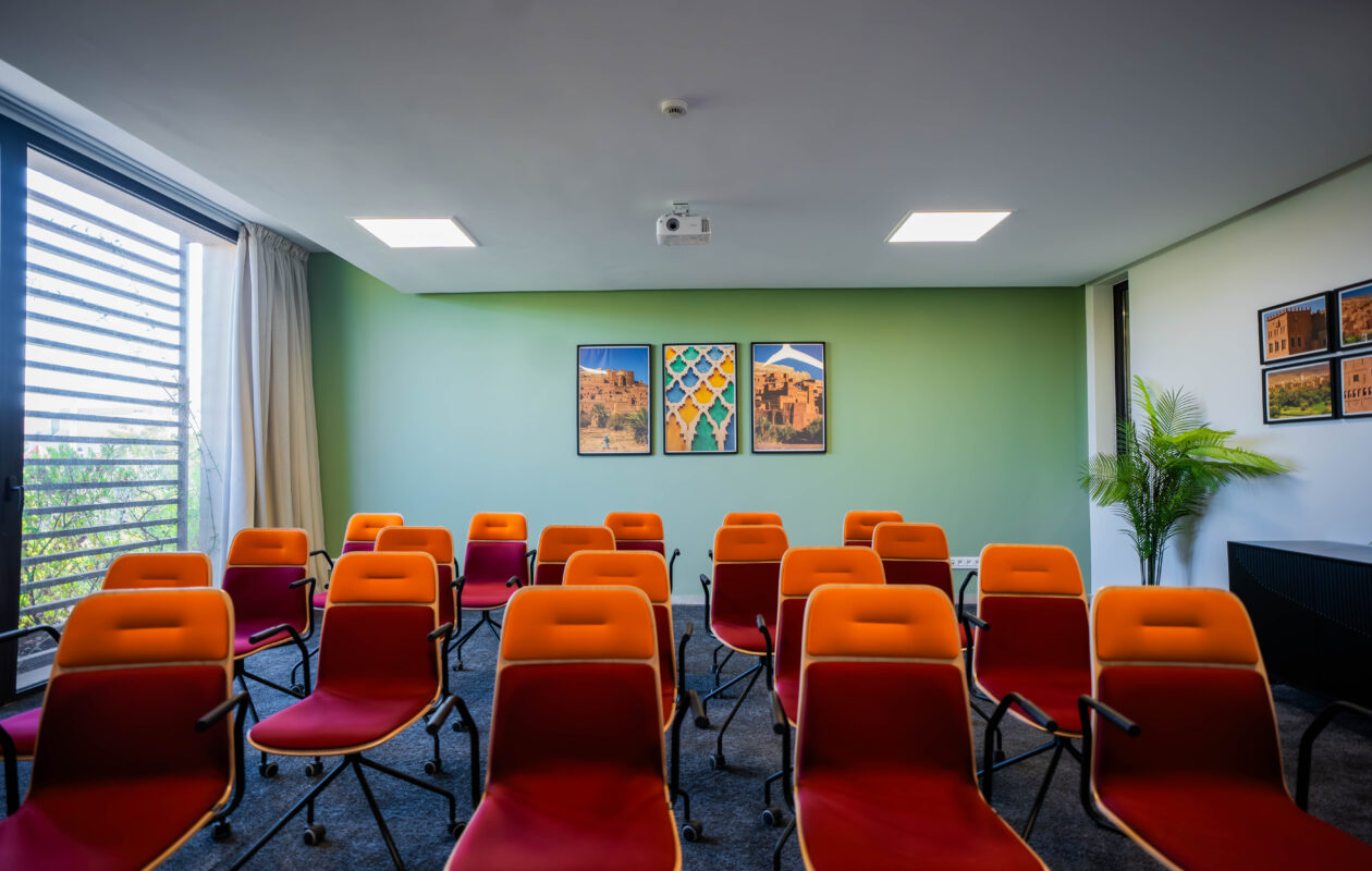 Nos salles de réunion peuvent accueillir jusqu’à 45 personnes, offrant un cadre idéal pour des réunions d’affaires, présentations ou formations.