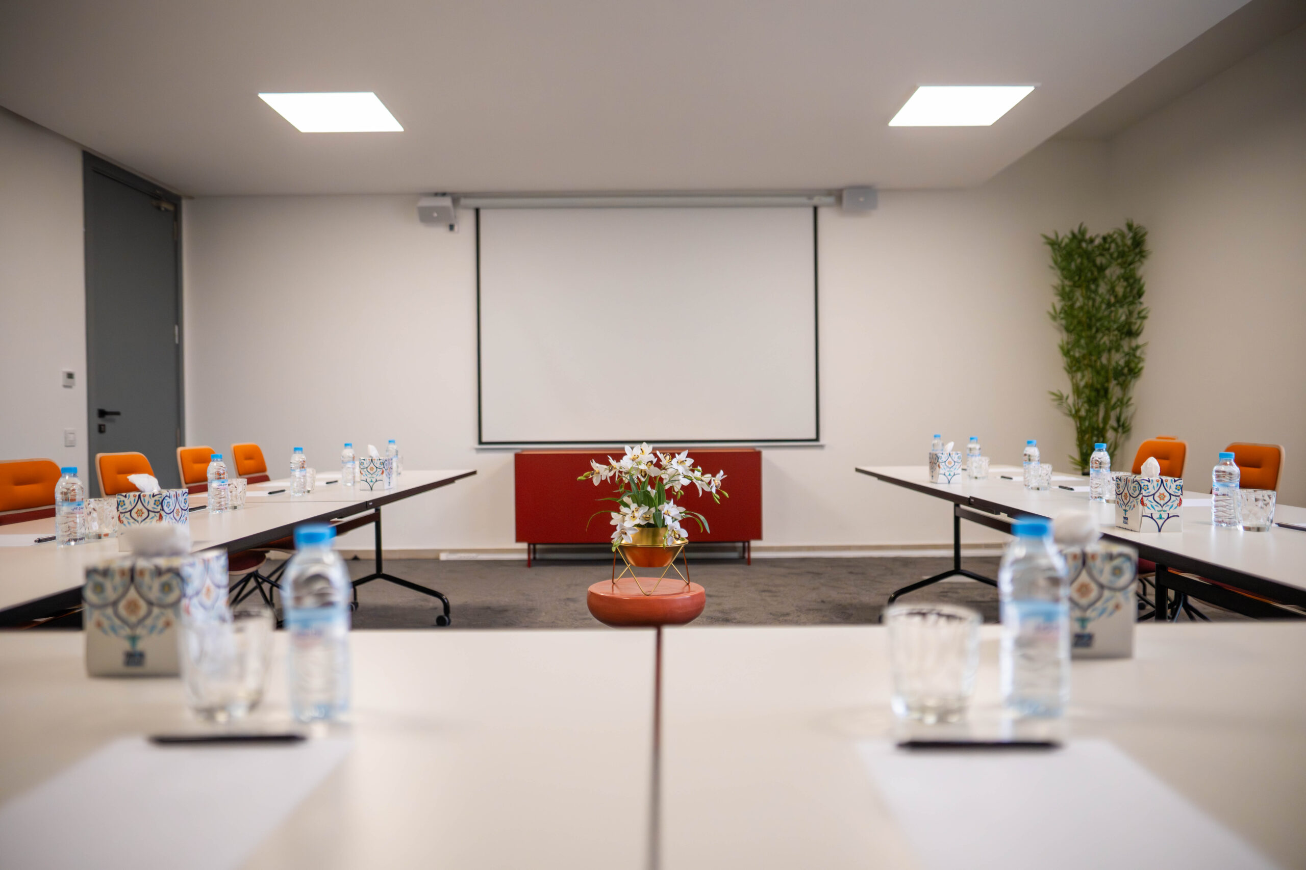 Chaque salle de réunion est équipée de systèmes audiovisuels modernes, d’une connexion Internet haut débit, de tableaux interactifs, de vidéoprojecteurs et de microphones.